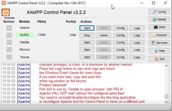 ibdata1archivomysql/data_oldy reemplácelo dentro de lamysql/datacarpeta - Inicie MySQL desde el panel de control de XAMPP